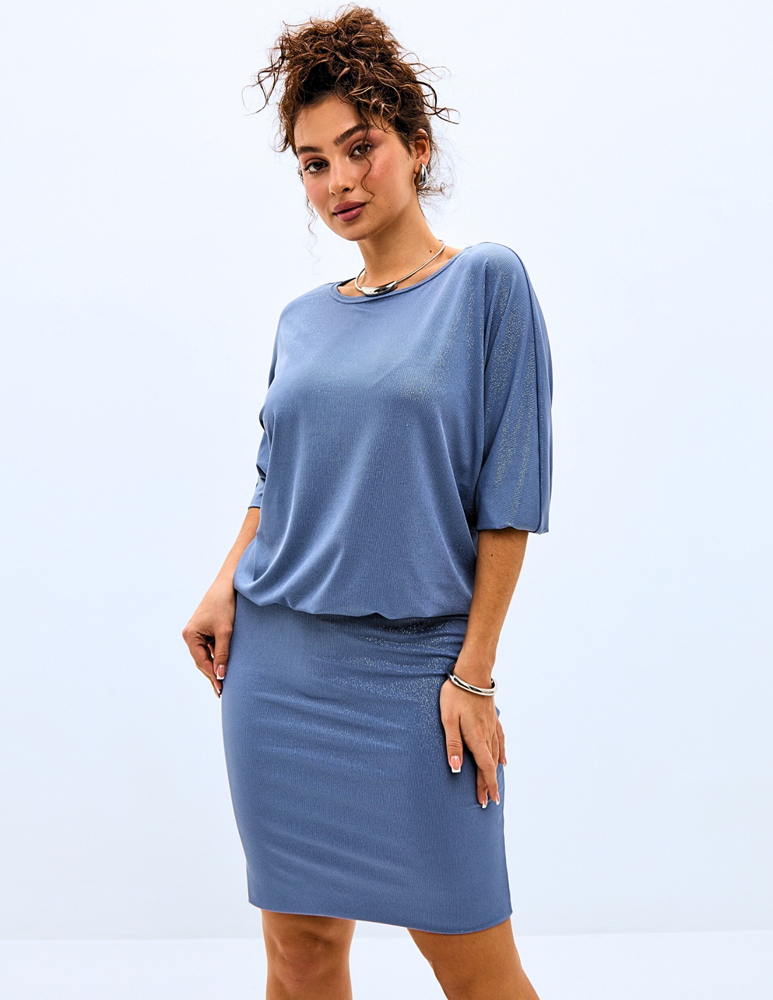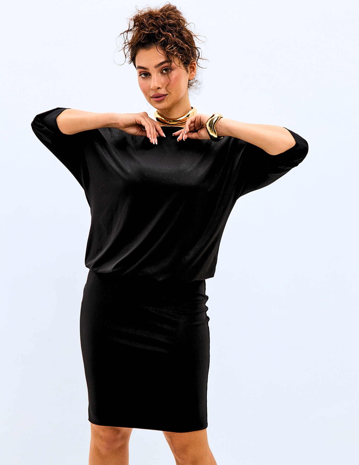 Предлагаем сочетание дизайна и качества- праздничное платье мини летучая мышь. Платье вне времени и моды остается надолго в числе любимых, благодаря удобному крою. Красивый перелив и ненавязчивый блеск материала актуален для гардероба искушенной модницы при создании яркого современного образа. Эластичная резинка разделяет свободный верх от прямого низа. Дает возможность легко прибавить дополнительный напуск сверху, скрывая несовершенство фигуры. Рукава летучая мышь в платье скрывают объем и придают воздушность, создавая эффект легкости и движения. Высокий манжет свободно облегает руку и может фиксировать необходимую для Вас длину рукава.